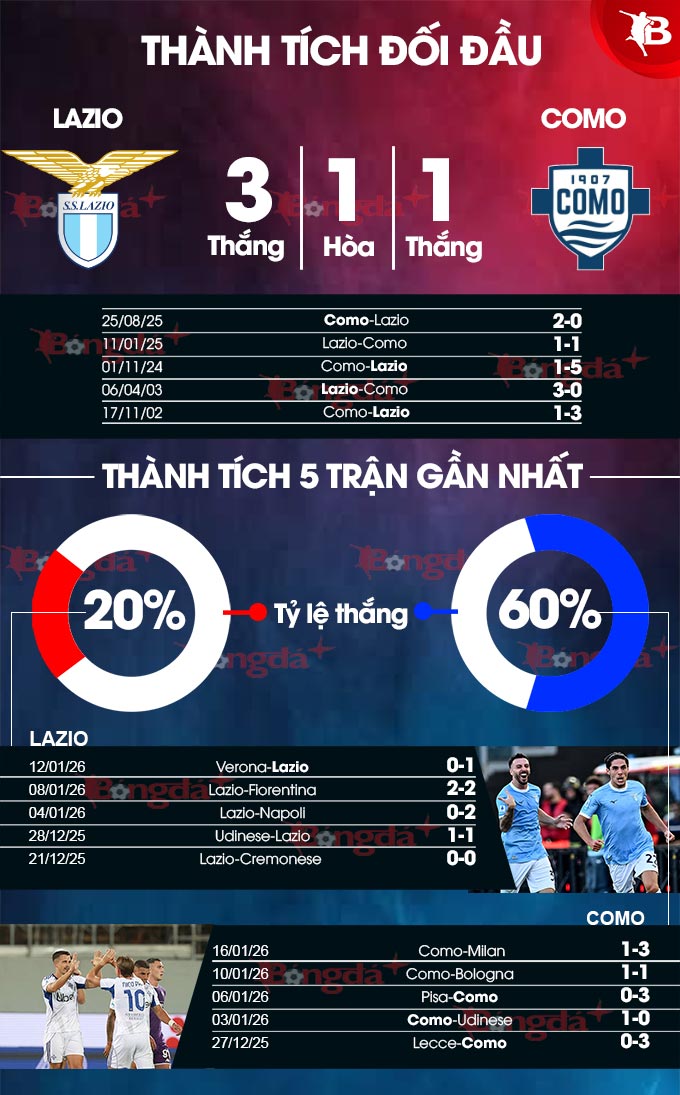 Với phong độ khá tệ đó, Lazio khó giành chiến thắng trước “hiện tượng” Como. Tuy đội bóng của HLV Cesc Fabregas vừa thua 1-3 ngay trên sân nhà trước Milan, nhưng thất bại đó không thể phủ nhận sạch trơn những gì Como đã làm được trước đó. Nên nhớ rằng, trước khi thua Milan, Como đang trải qua chuỗi 4 trận bất bại, trong đó họ giành 3 chiến thắng.