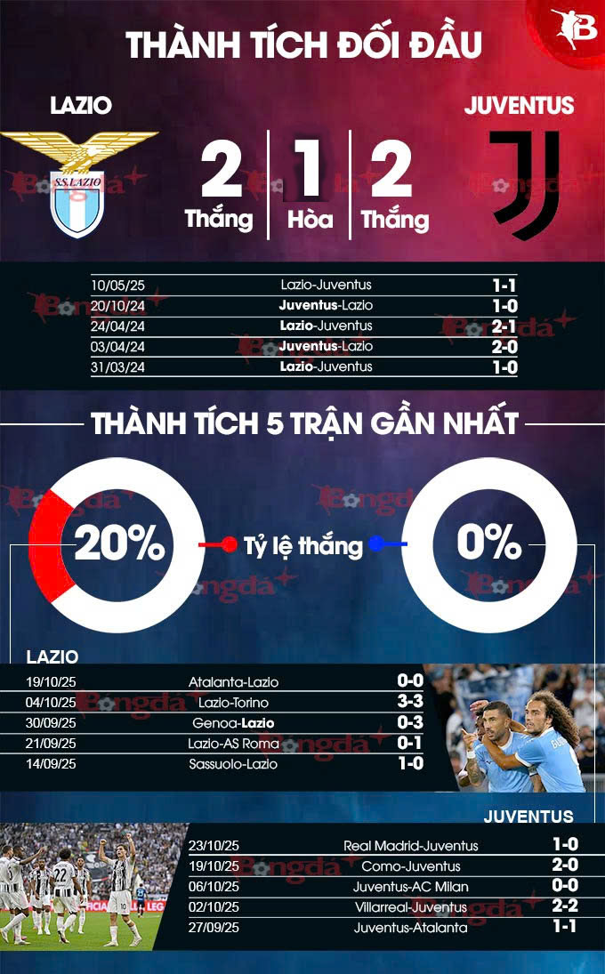 Cũng cần phải nói thêm rằng, Juventus gặp thuận lợi khi chạm trán Lazio trong bối cảnh đại diện thủ đô Italia đang không có được phong độ tốt. Bằng chứng là trong 5 trận gần nhất Lazio chỉ giành được 1 chiến thắng trước Genoa.
