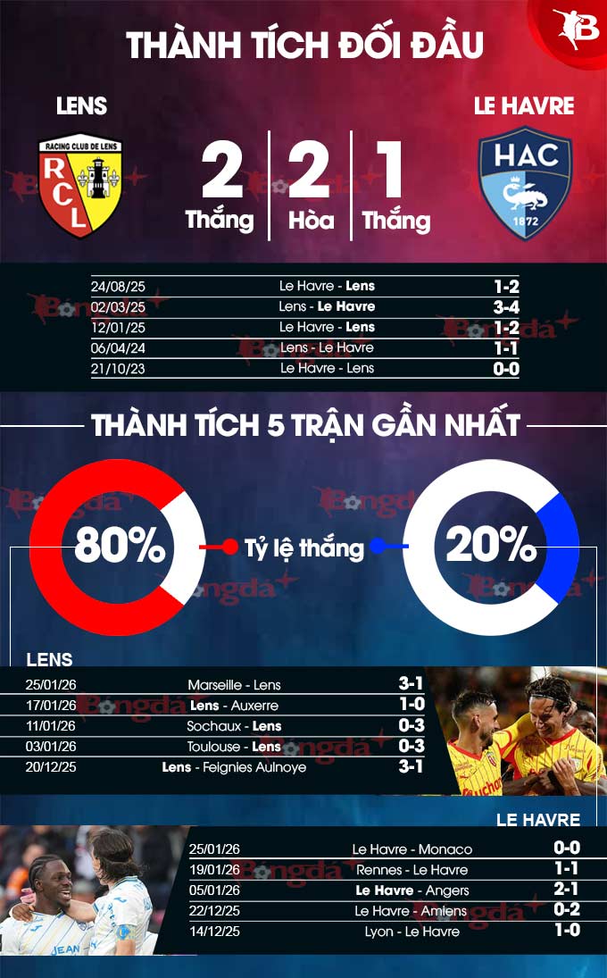 Với nhiều lợi thế về sân nhà, đội hình, phong độ và thành tích tại quê nhà, Lens sẽ cố gắng vượt qua “khắc tinh” Le Havre để trở lại đường ray chiến thắng.