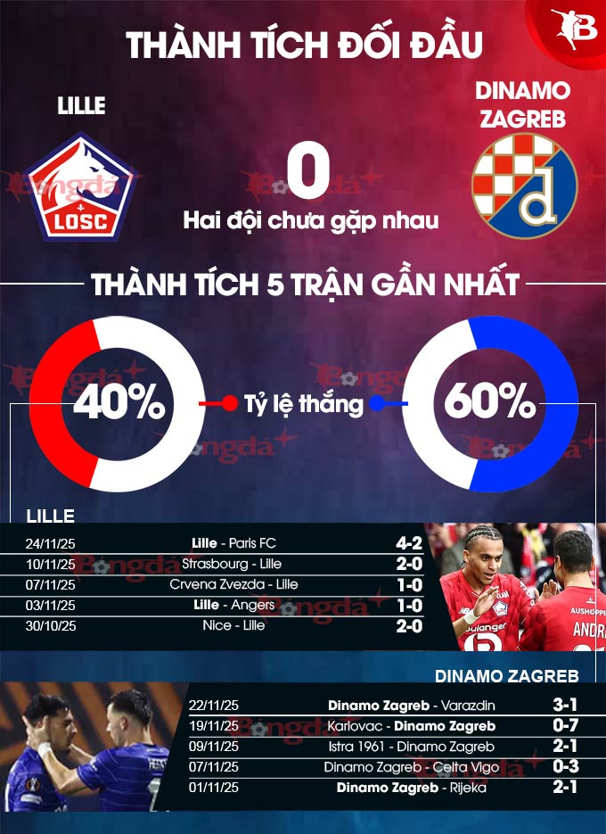 Mặc dù có phong độ khá tốt tại Europa League 2025/26, nhưng Dinamo Zagreb thực sự gặp khó khăn khi đối đầu với các đội trong năm giải đấu lớn, để thủng lưới rất nhiều bàn thắng, và điều đó không tốt trước một đội có tiềm năng ghi bàn liên tục như Lille.