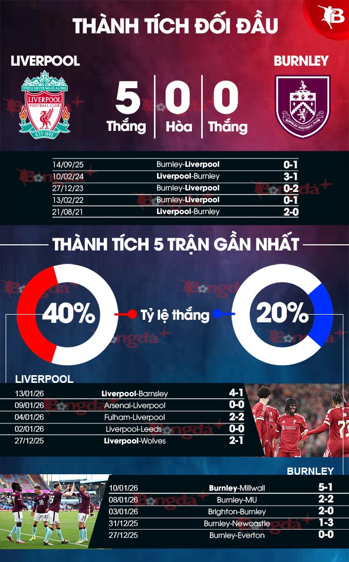 Phân tích phong độ Liverpool vs Burnley