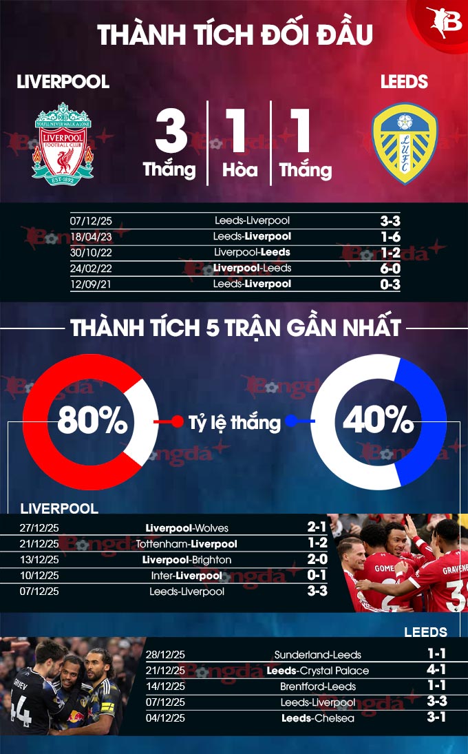 Trước một Leeds đang hồi sinh mạnh mẽ giai đoạn cuối năm 2025, các cầu thủ Liverpool chắc chắn sẽ gặp những khó khăn nhất định nhưng bản lĩnh và chuỗi phong độ ấn tượng gần đây giúp họ đủ khả năng giành chiến thắng.