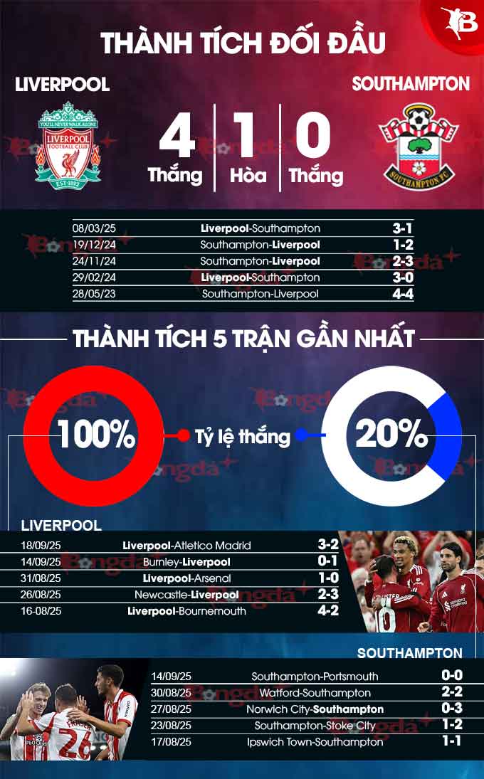 Phân tích phong độ Liverpool vs Southampton