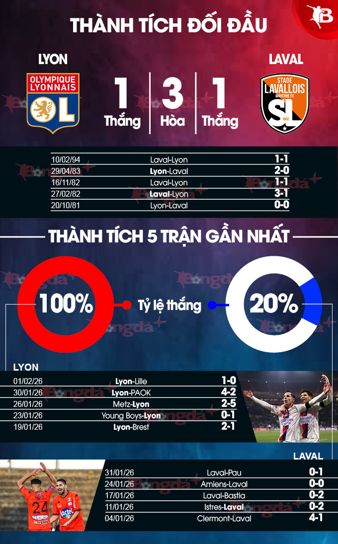 Trên sân nhà, Lyon cũng đã có 7 chiến thắng liên tiếp, trong đó có 4 trận giữ sạch lưới nhà. Đây là một nguyên nhân khác giúp thày trò HLV Fonseca càng tự tin hơn khi đón tiếp một Laval đang có phong độ không tốt.
