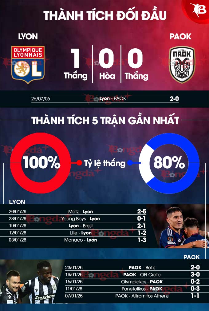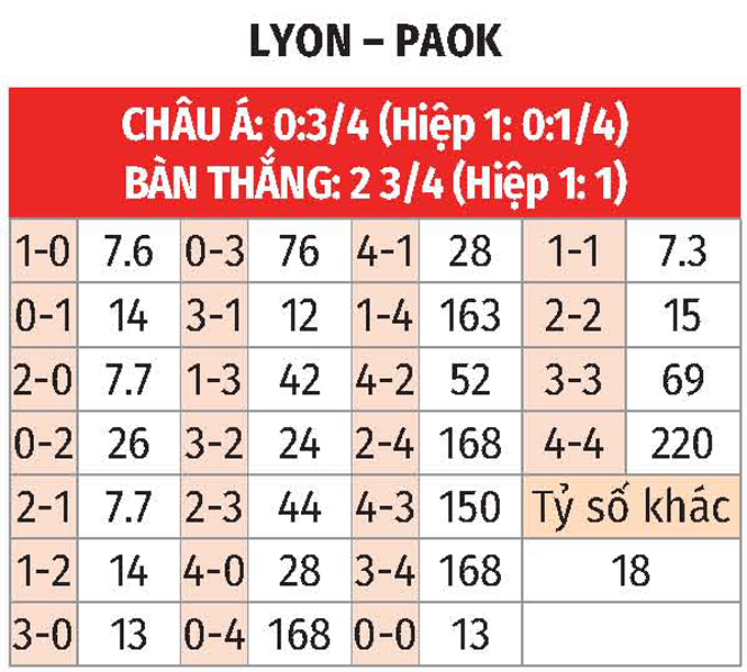 Chỉ là vào lúc này, gặp đối thủ đang vào phom như Lyon là thử thách cực đại cho PAOK. Phong độ của Lyon vs PAOK đang rất ổn vào lúc này.