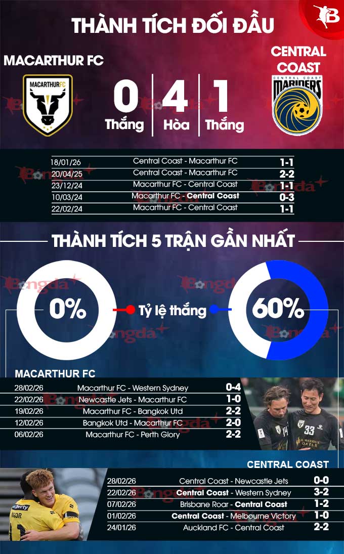 Phân tích dữ liệu chuyên sâu Macarthur FC vs Central Coast