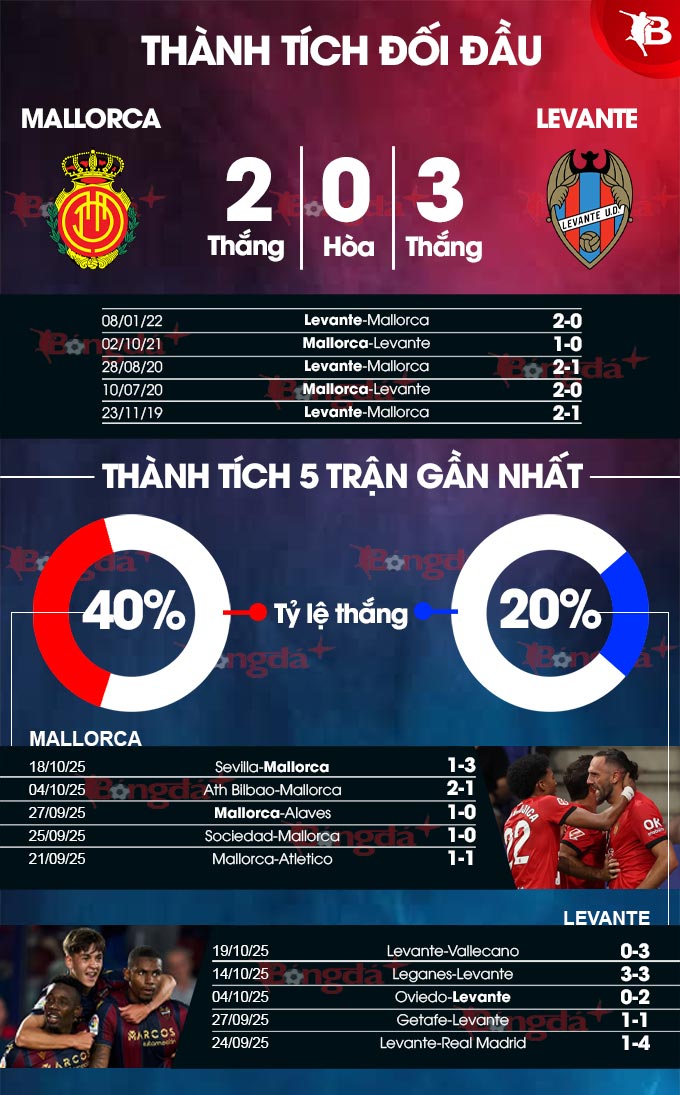 Mallorca đã tìm lại được phong độ khi giành chiến thắng ở 2 trong 3 trận gần nhất, nhưng Levante lại thi đấu rất tốt trên sân khách mùa này nên sẽ không dễ để đội chủ nhà có thể giành trọn 3 điểm.