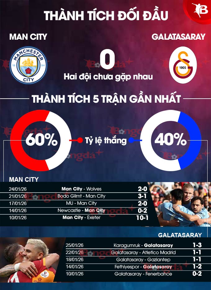 Lý thuyết là thế, còn lại Man City sẽ làm được bao nhiêu thì chưa ai biết. Tin tốt là họ vừa có lại niềm vui khi đánh bại đội bét bảng Wolves vào cuối tuần trước. Về phía Galatasaray, họ lại đang có sự ổn định rất lớn. CLB này chỉ thua 1/9 trận gần nhất còn Man City chỉ thắng 3/8 trận vừa xong.