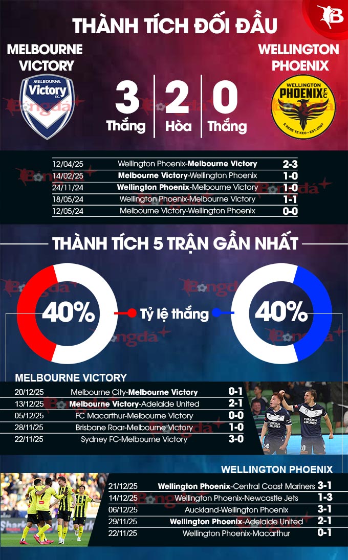 Từng có lúc không được lịch sử ủng hộ, nhưng gần đây Melbourne Victory lại thường xuyên bắt nạt Wellington Phoenix. Với ưu thế sân nhà cùng phong độ cao hơn, rất có thể họ sẽ lại khiến cho Wellington Phoenix phải thêm một lần ôm hận.