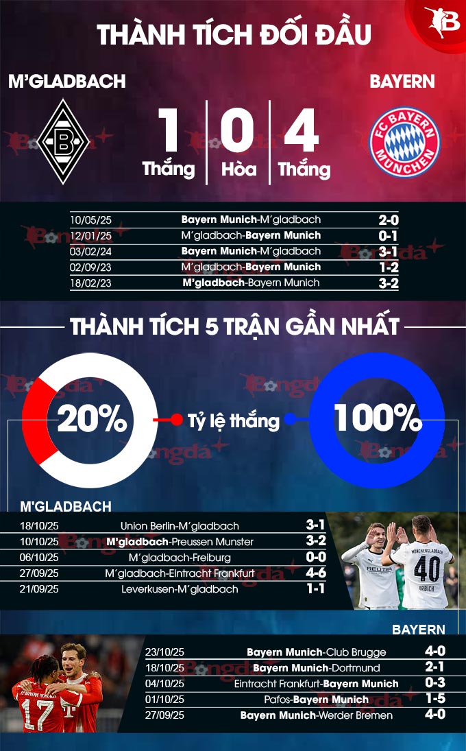 Phân tích dữ liệu chuyên sâu M'gladbach vs Bayern Munich
