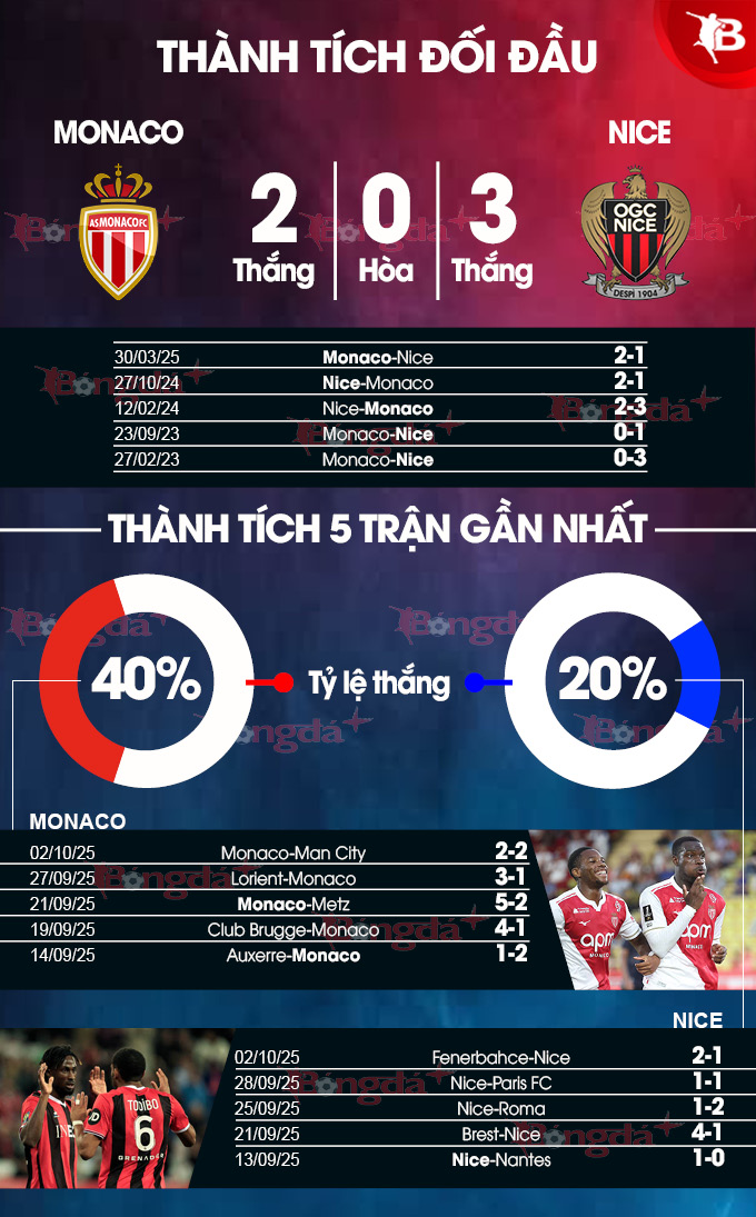 Nice có thể lấn lướt khi đối đầu với Monaco trong 5 trận gần nhất, nhưng phong độ hiện tại, đặc biệt trên sân đối phương của họ lại khiến giới mộ điệu nghi ngờ về khả năng giành điểm tại sân Louis II, nơi chủ nhà quyết tâm bắn hạ Đại bàng nhỏ.