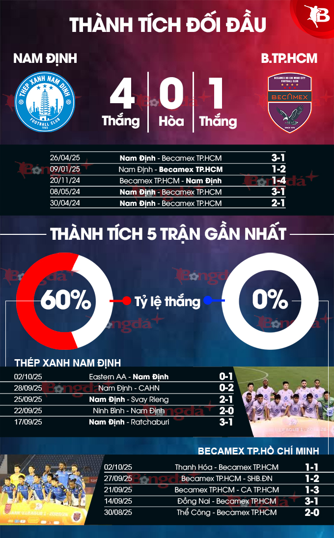 Phân tích phong độ Nam Định vs Becamex TP.HCM