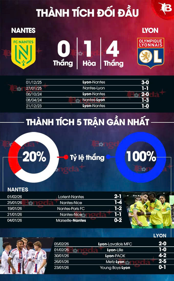 Phong độ của Nantes vs Lyon đang rất chênh lệch vào lúc này. Trong khi Nantes chỉ thắng 2/10 trận gần nhất thì Lyon thắng 10 trận liên tiếp gần đây.