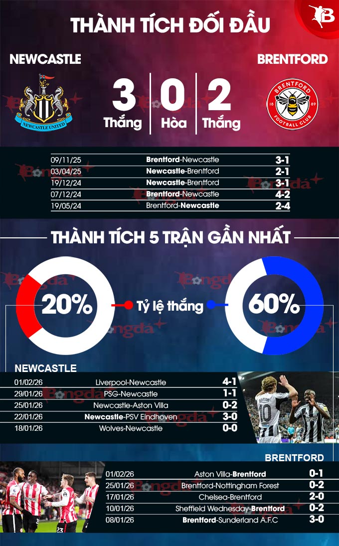 Theo cây viết Oliver Thomas của Sportmole, Brentford vốn không được lịch sử ủng hộ nhưng lúc này họ lại đang đá tốt hơn Newcastle. Chỉ phải gặp đối thủ đã lâu không thắng là cơ hội tốt để các vị khách thu về kết quả thuận lợi.