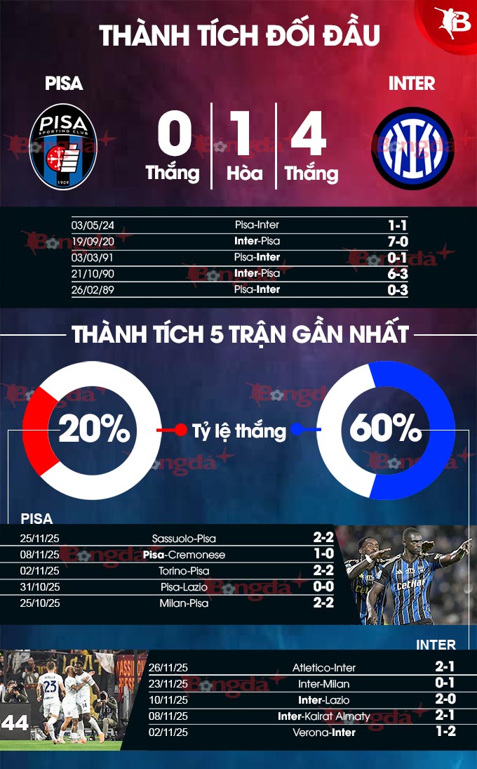 Phân tích phong độ Pisa vs Inter