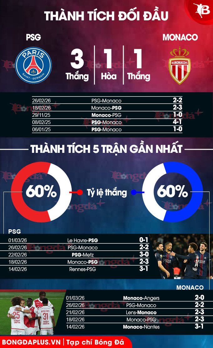 Monaco dường như đang tìm lại phong độ và sẽ lấy cảm hứng rất nhiều từ hai màn trình diễn ấn tượng trước PSG tại vòng play-off Champions League tháng trước. Do đó, một trận hòa nhiều bàn thắng tại Công viên các hoàng tử là kịch bản rất dễ xảy ra.