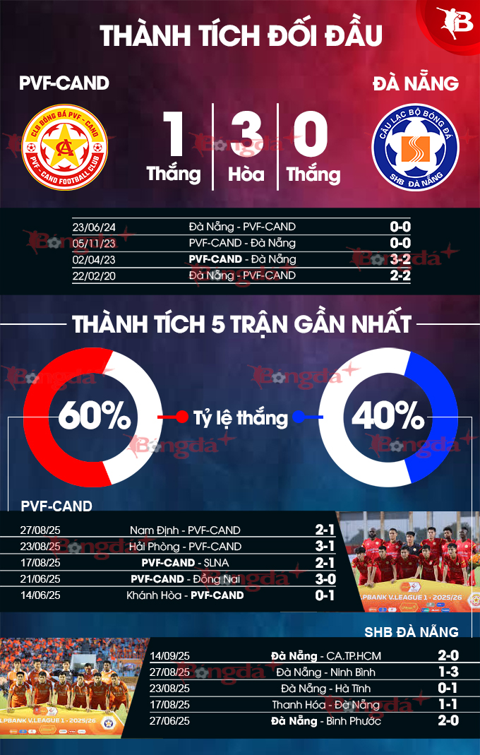 Lần gặp nhau gần nhất của hai đội là mùa giải 2023/24, khi ấy SHB Đà Nẵng còn chơi ở giải hạng Nhất và cả hai lần gặp nhau ở lượt đi và về đều có tỷ số hoà 0-0. Thế nhưng lần đối đầu này mọi thứ đã khác, khi cả hai đang cùng ở đấu trường V.League, chưa kể trận này, PVF-CAND chỉ có thể ra sân với 2 ngoại binh, nên đó cũng là một điểm yếu của chủ nhà.