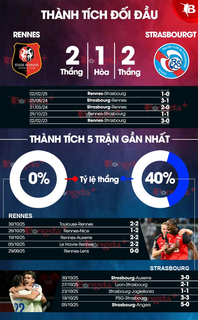 Dù Rennes đang có thành tích lấn lướt Strasbourg ở những trận đối đầu trên sân nhà, nhưng phong độ kém thuyết phục từ đầu mùa giải khiến họ có thể sẽ gặp khó khăn ở trận đấu này.