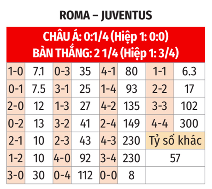 Với những phân tích nêu trên, nhiều khả năng Roma sẽ thắng theo châu Á và thắng trận đấu này.