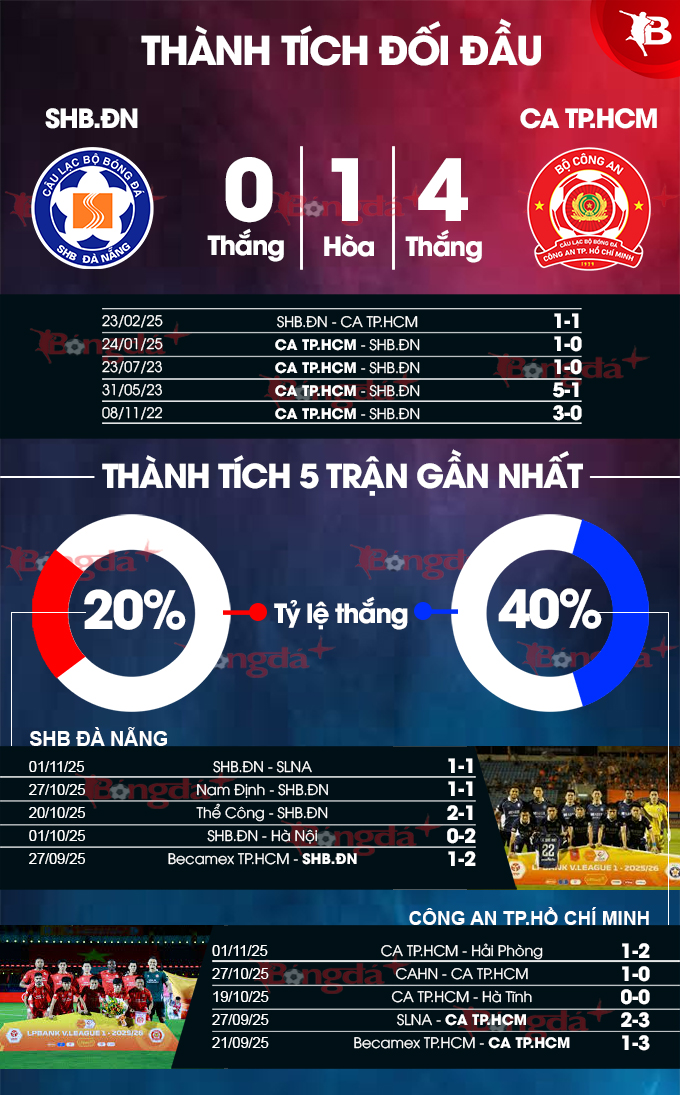 Đá sân nhà, nhưng yếu tố ấy chưa bao giờ là lợi thế cho SHB Đà Nẵng, đặc biệt là ở mùa giải 2025/26, khi họ chỉ mới giành được đúng 1 điểm tại Hoà Xuân ở vòng 9 vừa qua. Thêm vào đó, lực lượng của đội chủ nhà cũng không được đánh giá cao bằng đội khách, nên họ càng bất lợi trong cuộc so kè này. Đấy là chưa nói đến việc xét 5 cuộc đối đầu gần nhất, SHB Đà Nẵng chỉ giành được 1 trận hoà, nhưng có đến 4 trận thua, nên đấy càng là vấn đề đội chủ nhà sông Hàn phải lưu tâm.