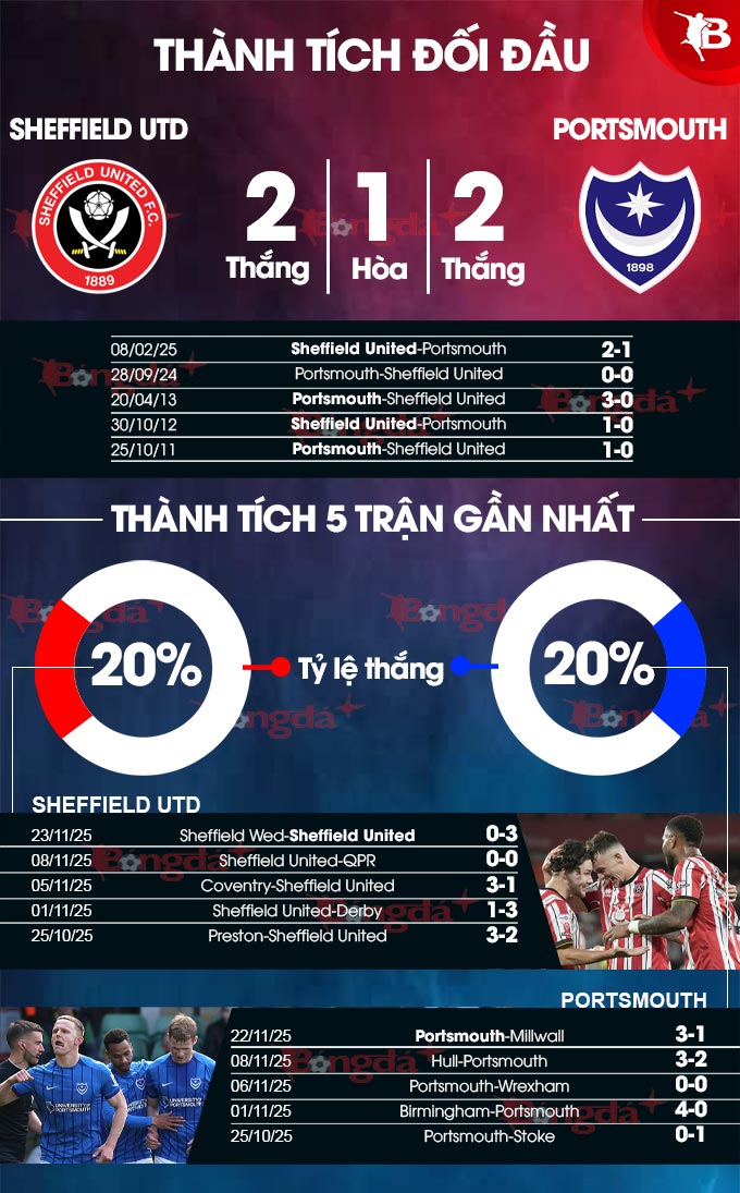 Nhận định bóng đá Sheffield United vs Portsmouth, 02h45 ngày 27/11: Bất phân thắng bại