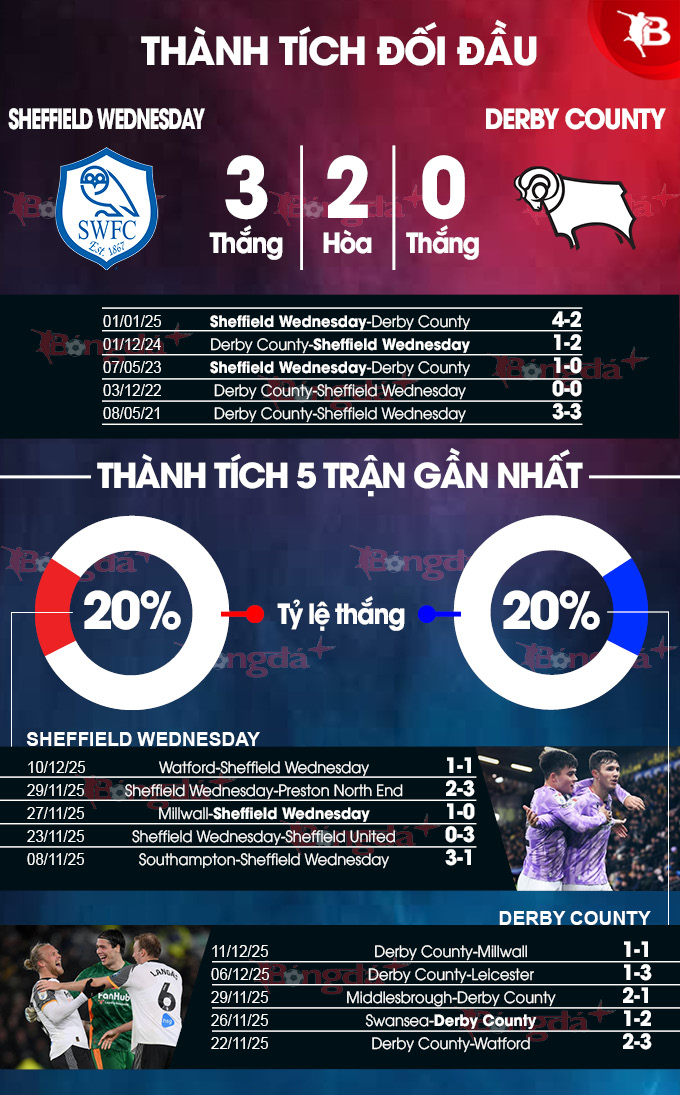Phân tích phong độ Sheffield Wednesday vs Derby County