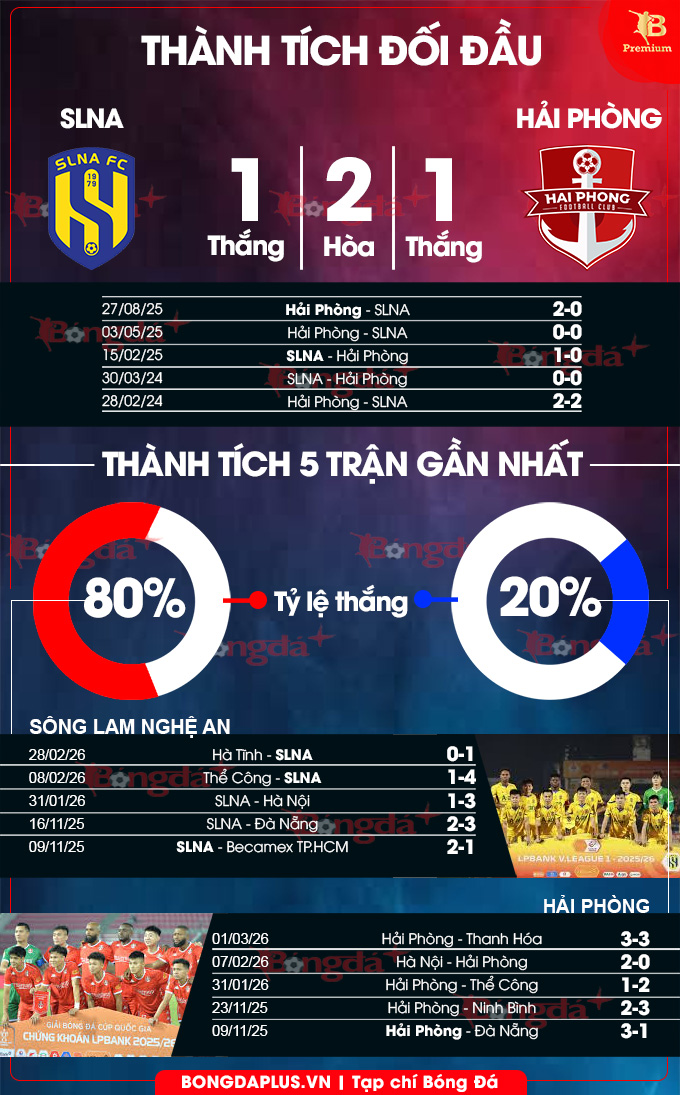 Lịch sử đối đầu giữa SLNA và Hải Phòng khá cân bằng với 13 chiến thắng cho Hải Phòng, 11 chiến thắng cho SLNA và 10 trận hòa. Điều đó cho thấy mỗi lần 2 đội gặp nhau, kết quả luôn khó đoán. Tuy nhiên, với phong độ hiện tại, đội bóng xứ Nghệ hoàn toàn có cơ sở để nghĩ đến một kết quả tích cực.