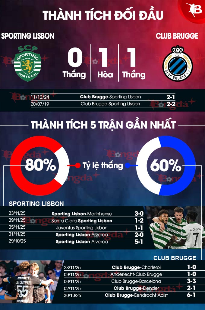 Phân tích dữ liệu chuyên sâu Sporting Lisbon vs Club Brugge