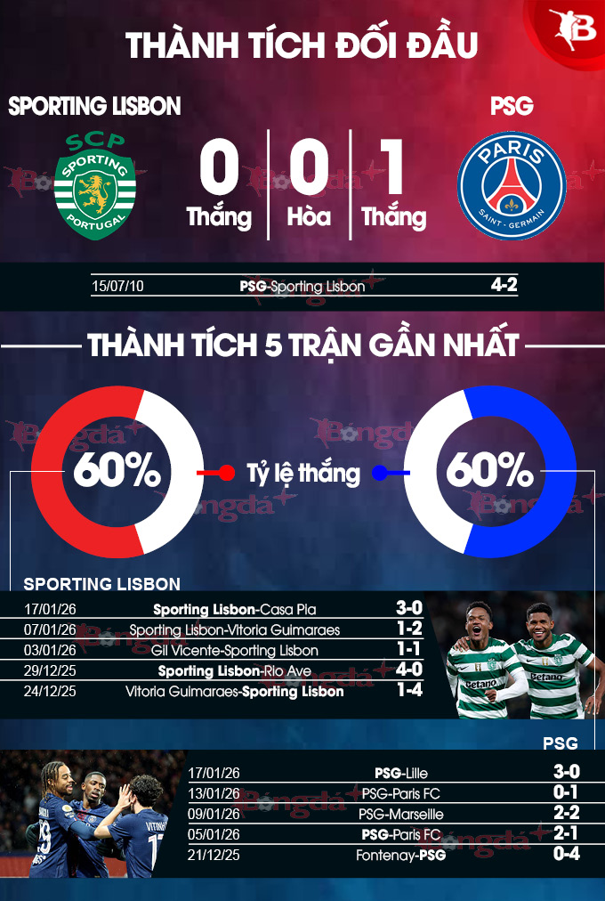 Sau khi bị thua sốc 1-2 trước Vitoria Guimaraes tại Cúp Liên đoàn Bồ Đào Nha, Sporting Lisbon đã kịp thời trở lại với chiến thắng ấn tượng 3-0 tại sân Jose Alvalde ở giải VĐQG. Qua đó, thày trò HLV Rui Borges sẵn sàng đối đầu với ĐKVĐ PSG trong một trận cầu mà họ cũng hướng tới một suất đi tiếp vào vòng 1/8 như đối thủ.