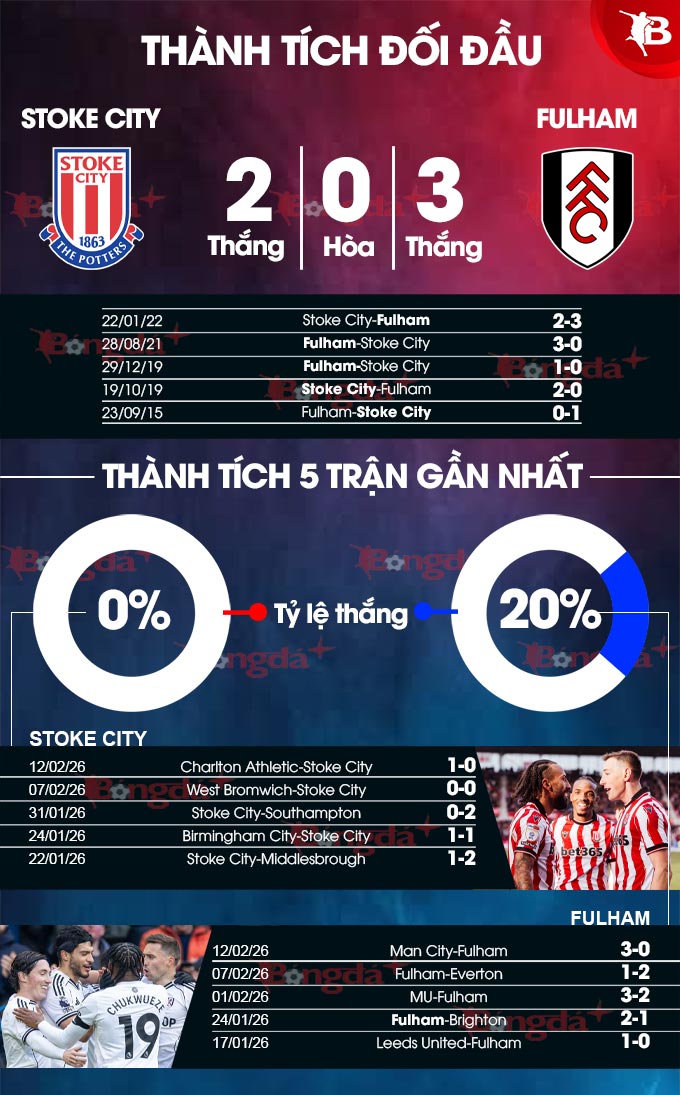 Fulham đang có phong độ không tốt, nhưng so với họ thì Stoke City cũng chẳng khá hơn. Với thói quen hay bắt nạt đối thủ đang chinh chiến ở Championship, Fulham nhiều khả năng sẽ được ca khúc khải hoàn.