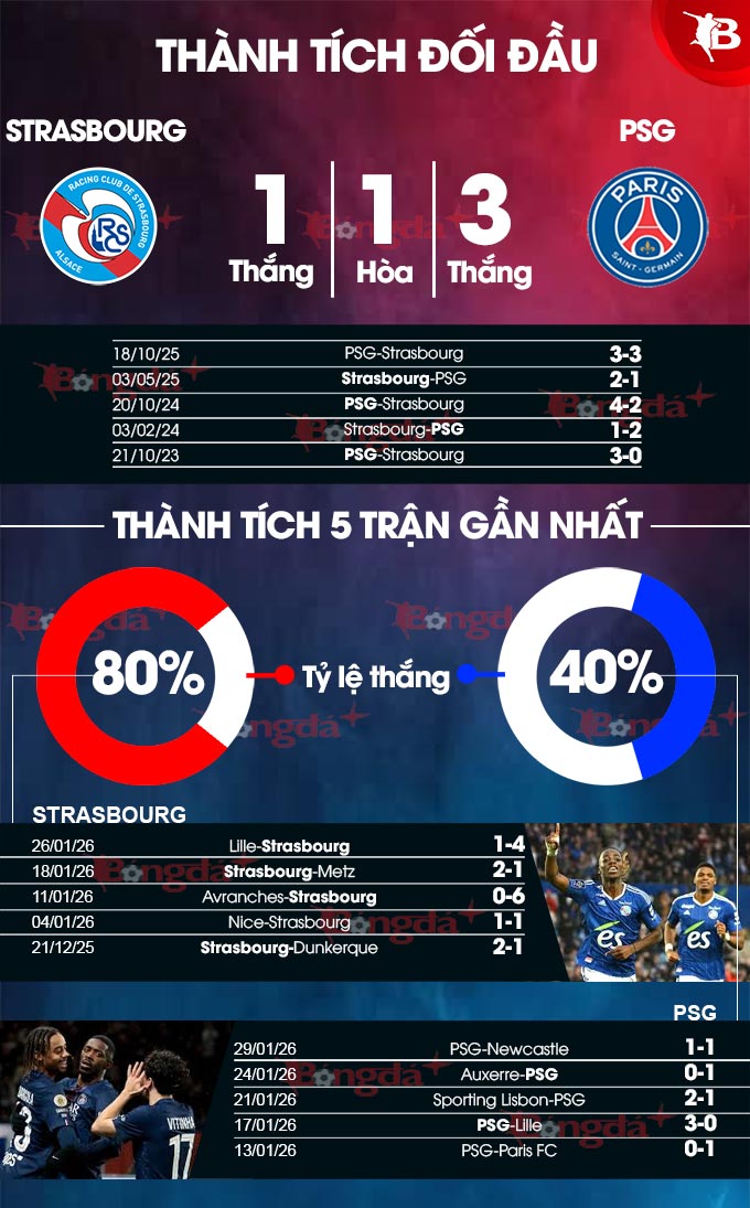 28. Ở 28 lần đụng độ nhau gần đây, Strasbourg chỉ thắng 3 trận, hòa 5 và thua tới 20 trận. Và cả 3 chiến thắng đó đều diễn ra trên sân La Meinau. Vì thế, PSG phải thật thận trọng mới có thể thành công.