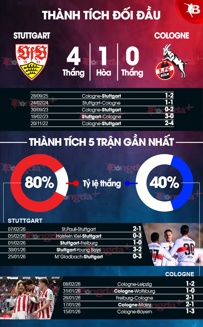 Theo Sportmole: “Stuttgart đang có phong độ tốt và lấn lướt Cologne. Với những gì đang thể hiện, Stuttgart nhiều khả năng sẽ có niềm vui trước Cologne".