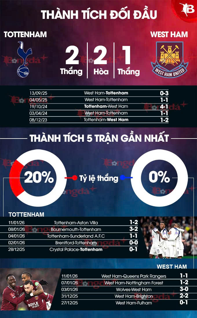 Phân tích phong độ Tottenham vs West Ham