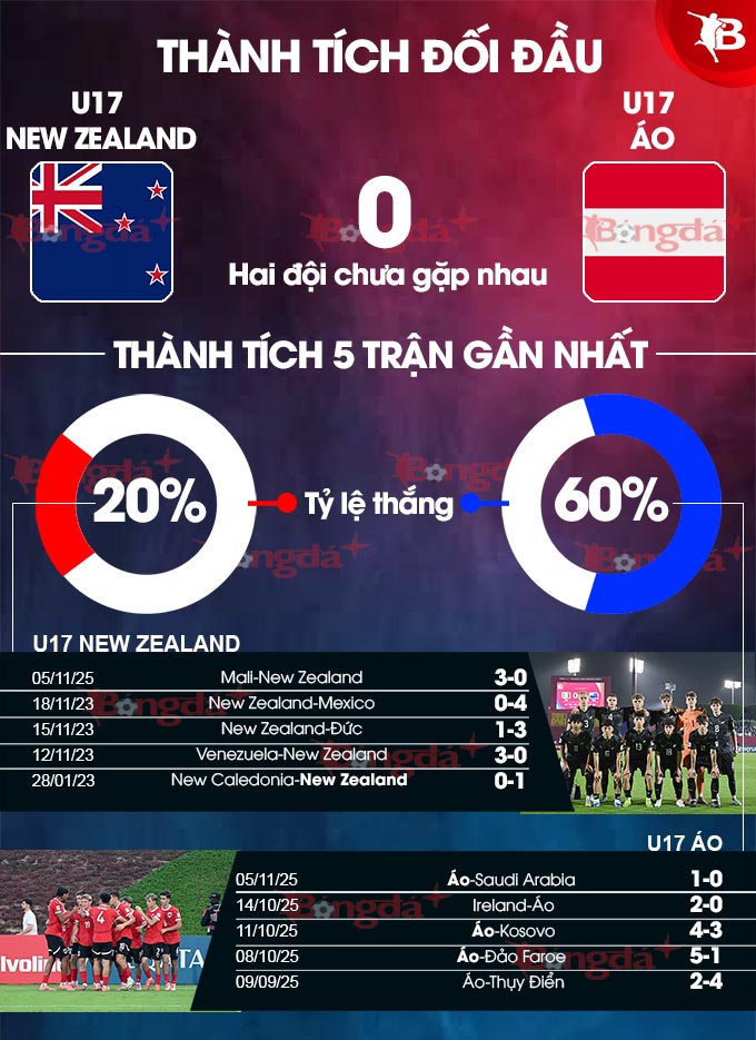 Thông tin lực U17 New Zealand vs U17 Áo mới nhất