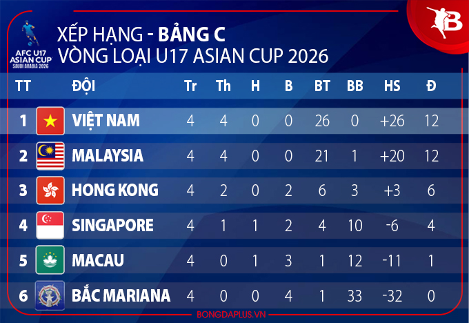 | TT | Đội bóng | Trận | +/- | Điểm |