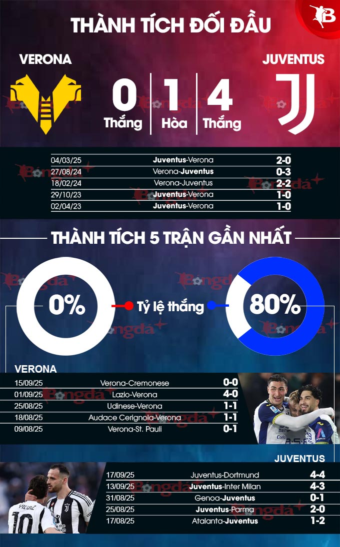Khi ngay cả đội mới lên hạng Cremonese còn đủ khả năng cầm hòa Verona ở vòng đấu trước, rất khó để tin rằng Juve sẽ đánh rơi điểm trước đối thủ thua xa mình về mọi mặt. Nên biết, ở mùa 2024/25, Juve từng hạ Verona trong cả 2 lượt trận đều với tỷ số cách biệt mà không để thủng lưới. Nếu làm được điều tương tự ở trận đấu tới, thì họ sẽ có thắng lợi thứ 7 trong 8 lần chạm trán Verona gần đây (trận còn lại hòa).