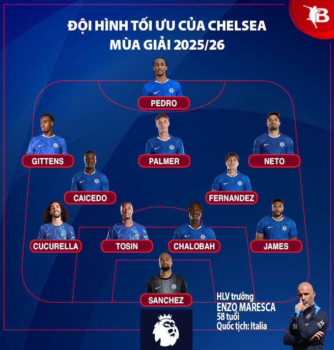 Đội hình tối ưu của Chelsea mùa 2025/26