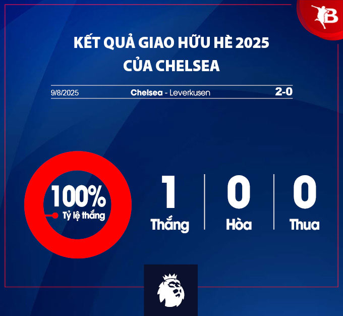 Do bận thi đấu đến tận cuối Club World Cup, Chelsea đã không có một giai đoạn tiền mùa giải đúng nghĩa như nhiều CLB khác. Họ mới chỉ đá 1 trận gặp Leverkusen và giành chiến thắng 2-0. Vào 21h00 tối nay (10/8), Chelsea sẽ đá trận giao hữu cuối cùng gặp AC Milan trên sân nhà Stamford Bridge.