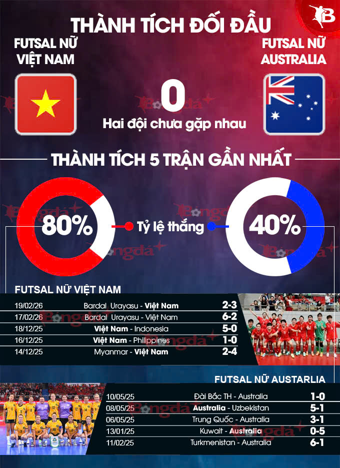 Phân tích phong độ ĐT futsal nữ Việt Nam vs ĐT futsal nữ Australia