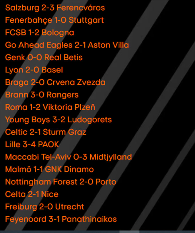 Ở một cặp đấu đáng chú ý khác, Aston Villa tưởng như sẽ gặp thuận lợi khi mở được tỷ số trên sân của Go Ahead Eagles ngay phút thứ 4 do công của Evann Guessand. Sau đó chính cầu thủ này còn bỏ lỡ cơ hội bằng vàng khi không thắng nổi thủ môn Jari De Busser trong thế đối mặt.