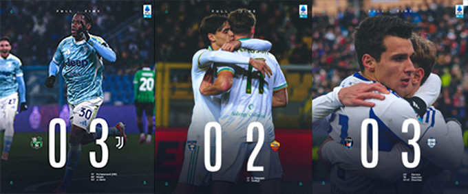 Trong khi đó, Juventus cũng đánh bại Sassuolo với tỷ số 3-0 ngay trên sân đối thủ. Những người lập công cho Bà đầm già là Miretti, Jonathan David và pha phản lưới nhà của Muharemović bên phía Sassuolo.