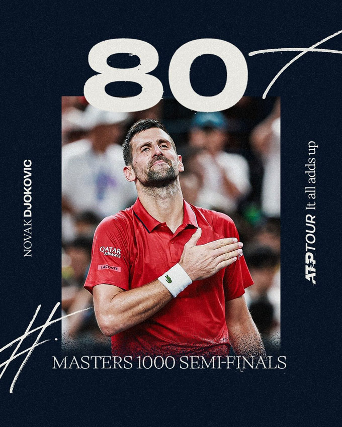 Djokovic đã viết nên một cột mốc lịch sử mới khi trở thành tay vợt lớn tuổi nhất lọt vào bán kết một giải ATP Masters 1000. Đây cũng là lần thứ 80 Nole góp mặt ở bán kết Masters 1000.