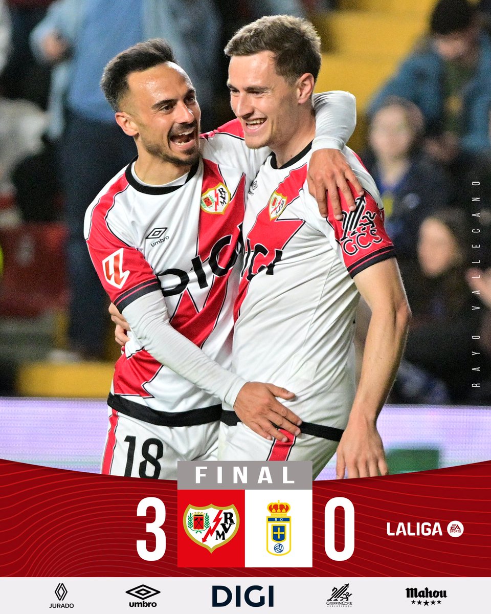 Thắng trận, Vallecano xếp thứ 12 trên BXH La Liga 2025/26 khi có 30 điểm, bằng với Sevilla và Girona nhưng đứng trên nhờ hơn hiệu số. Trong khi đó, Oviedo vẫn đứng bét bảng khi chỉ có 17 điểm.
