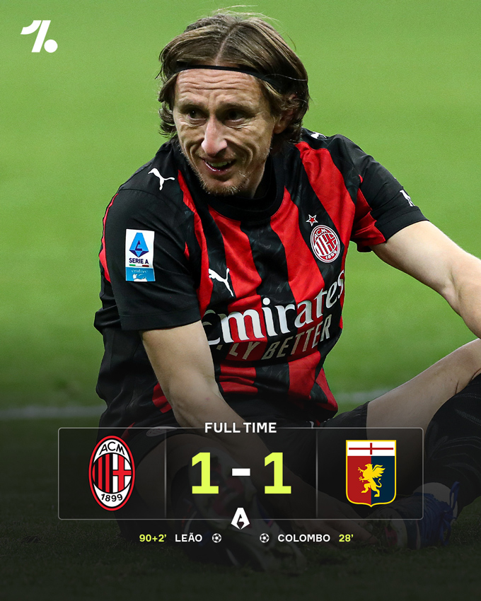 Nhưng may mắn không đến mãi với Genoa. Phút 90+2, từ tình huống tổ chức đá phạt góc của AC Milan, 1 cầu thủ của Genoa không thể phá bóng, khiến bóng tìm đến vị trí của Leao. Cơ hội tới và Leao không bỏ lỡ để đánh đầu, gỡ hòa 1-1.