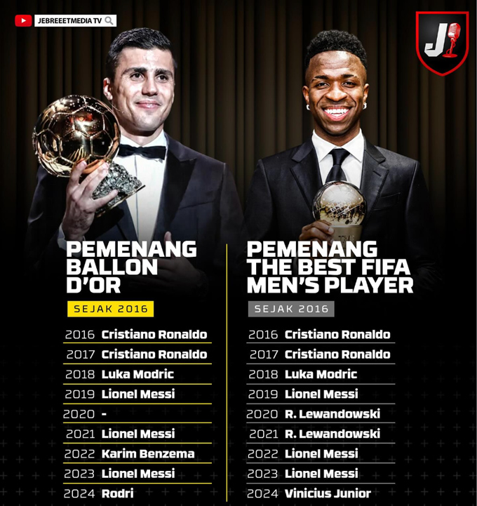 Trước đó, FIFA từng trao giải World Player of the Year từ năm 1991 đến 2009.