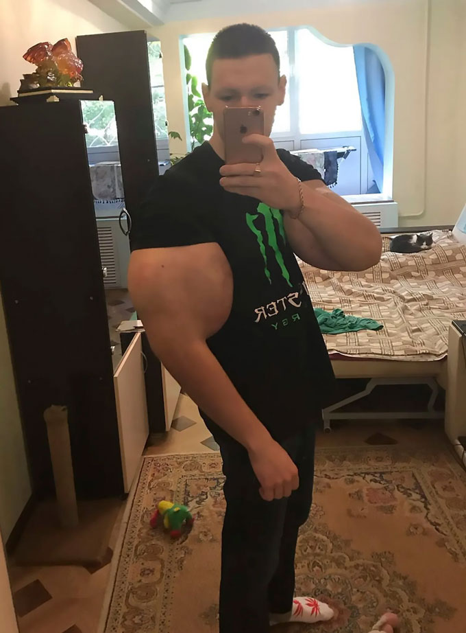 Những hình ảnh và video gây ám ảnh do chính Tereshin đăng tải cho thấy một phần cơ bắp đã “nổ tung”, tạo thành lỗ hổng lớn và mô bị thối rữa. Từ một người thích gây chú ý với đôi tay phồng to 24 inch, Tereshin giờ đối mặt hậu quả khủng khiếp vì bất chấp mọi cảnh báo của bác sĩ.