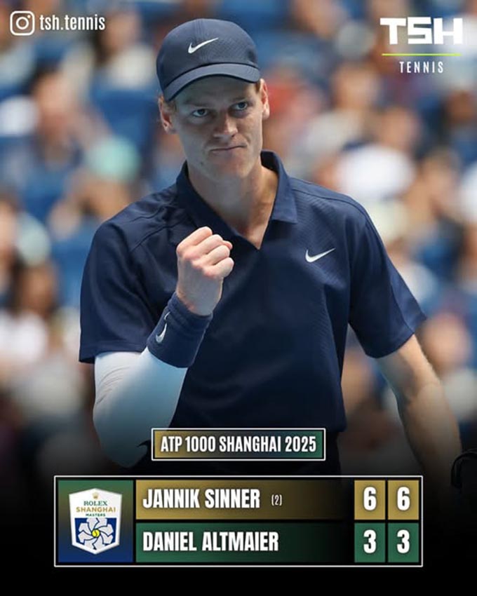 Sinner đang nỗ lực trở thành tay vợt đầu tiên bảo vệ thành công danh hiệu vô địch Thượng Hải kể từ Novak Djokovic năm 2013 và đến dự giải ngay sau khi nâng cao danh hiệu ATP 500 tại Bắc Kinh hôm thứ Tư vừa qua. Đối đầu với Altmaier, anh tiếp tục màn trình diễn ấn tượng với một trận đấu kéo dài 1 giờ 38 phút.