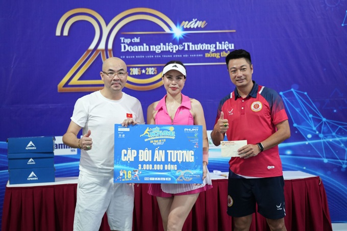 Ngoài ra, Ban Tổ chức còn trao giải “Hoa khôi” và Á khôi Pickleball cho các tay vợt nữ thi đấu ấn tượng, góp phần làm nên sắc màu đặc biệt của giải: Hoa khôi Huyền Trang khoe sắc cùng Á khôi Trịnh Hiền và Lê Dung.