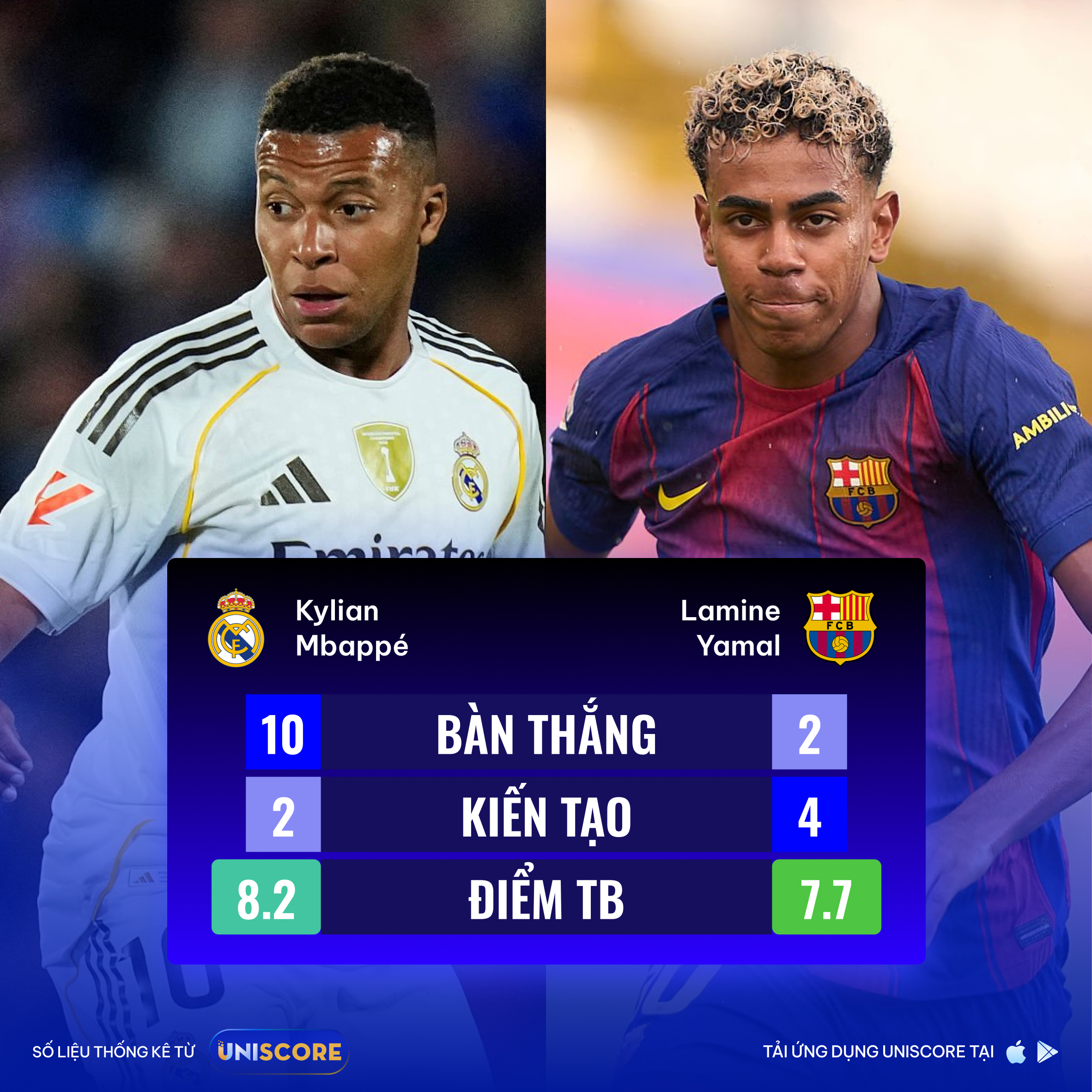 Đây không chỉ là cuộc chiến vì ba điểm mà còn là màn so T của lịch sử, danh dự và bản sắc hai câu lạc bộ vĩ đại nhất Tây Ban Nha. Hôm nay, cùng Uniscore, điểm qua những con số thú vị trước thềm trận “Siêu Kinh Điển” đầu tiên của mùa giải.