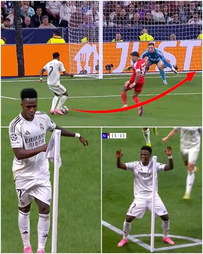 Sau khi ghi bàn quyết định ở phút 80 mang về chiến thắng 2-1 cho Real Madrid, Vinicius đã tiến đến cột cờ góc và thực hiện điệu nhảy từng gây tranh cãi một tuần trước. Ở lượt đi, cũng chính màn ăn mừng này đã châm ngòi cho căng thẳng với các cầu thủ Benfica và dẫn đến cáo buộc tiền vệ trẻ Gianluca Prestianni có hành vi phân biệt chủng tộc.
